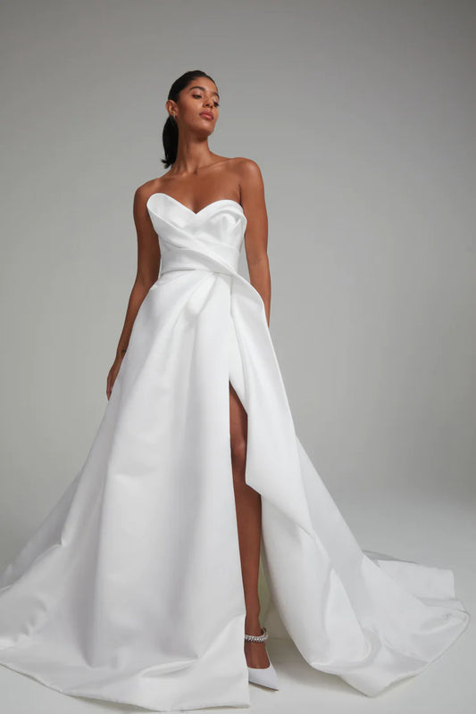 Make a statement with our Asymmetrical Neckline Wedding Dresses collection. Featuring one-shoulder and uniquely draped designs, these gowns offer a modern, fashion-forward take on bridal elegance. Perfect for the bride who loves bold details and contemporary silhouettes, asymmetrical necklines add a touch of sophistication and individuality. Whether you prefer sleek minimalism or intricate embellishments, this collection offers a variety of styles to suit your wedding day vision.