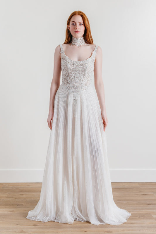 Beaded Off-the-Shoulder Lace Wedding Dress