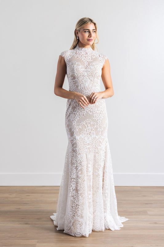Find your dream high neckline wedding dress today! Call us at 513-821-6622 or book your appointment here to schedule your fitting!