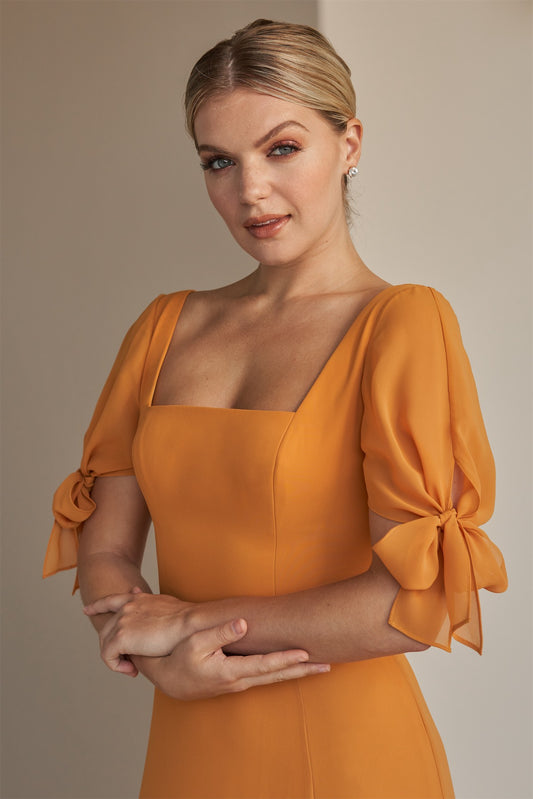 Chiffon Square Neck Criss-Cross Back Bridesmaid Dress