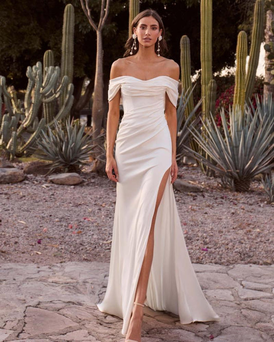 The La Perle by Calla Blanche Collection captures the essence of effortless romance for the free-spirited bride. Featuring flowing crepe gowns, delicate sheaths, and dreamy overlays adorned with sparkling beadwork, La Perle embraces comfort without sacrificing beauty. Intricate floral embroidery, whimsical sleeves, and soft, lightweight fabrics create gowns that move with you, perfectly balancing bohemian charm and timeless elegance. Designed for brides who want to feel both relaxed and radiant on their wedding day.