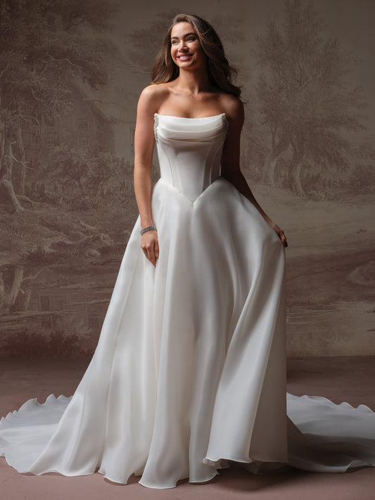 Maggie Sottero is a diverse collection of carefully-crafted wedding gowns that promote the modern romantic’s sense of beauty and elegance and elevates quality and style. The fairy-tale element is extended from the gowns to the wedding, as brides can personalize their dresses to reflect their love story.