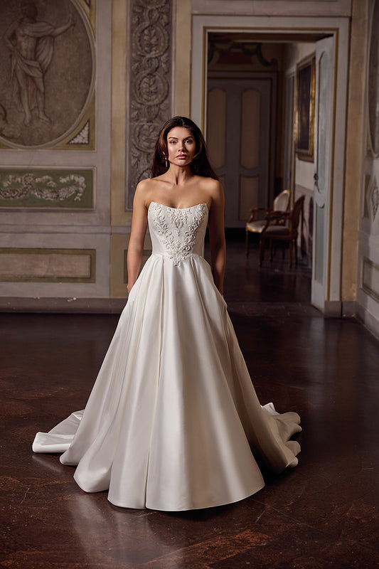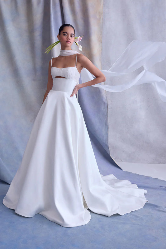 Elevate your bridal style with our Mikado Wedding Dresses collection. Known for its rich texture and subtle sheen, mikado fabric offers a structured, sophisticated look that’s perfect for modern brides. These gowns feature clean lines, elegant silhouettes, and a luxurious feel that exudes timeless beauty. Whether you prefer minimalist designs or subtle embellishments, mikado wedding dresses deliver effortless elegance and a flawless fit for your special day.