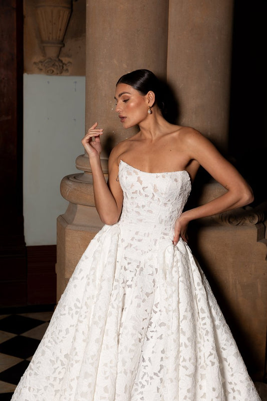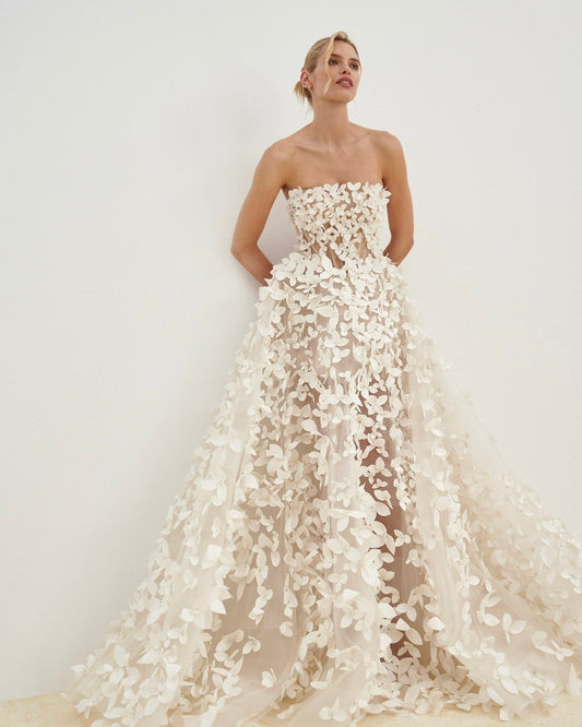 Show off your shoulders with the timeless elegance of our Strapless Wedding Dresses collection. Perfect for brides seeking a classic, sophisticated look, these gowns feature flattering necklines and beautifully structured bodices. Whether you prefer sleek satin, delicate lace, or intricate beading, strapless dresses offer versatility for every bridal style. Ideal for formal ceremonies, beach weddings, or modern celebrations, these gowns create a graceful, unforgettable silhouette for your special day.