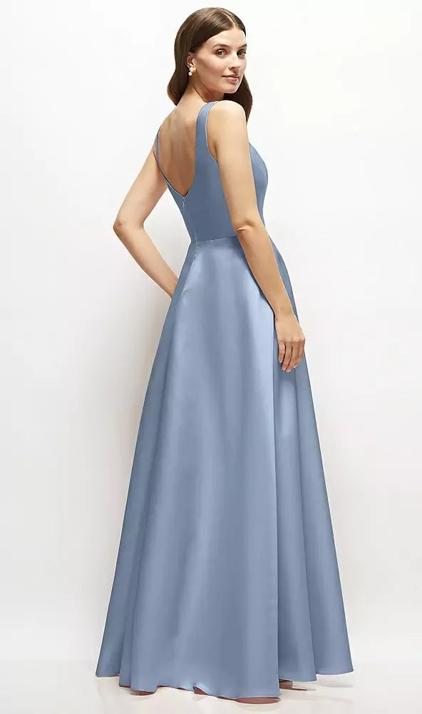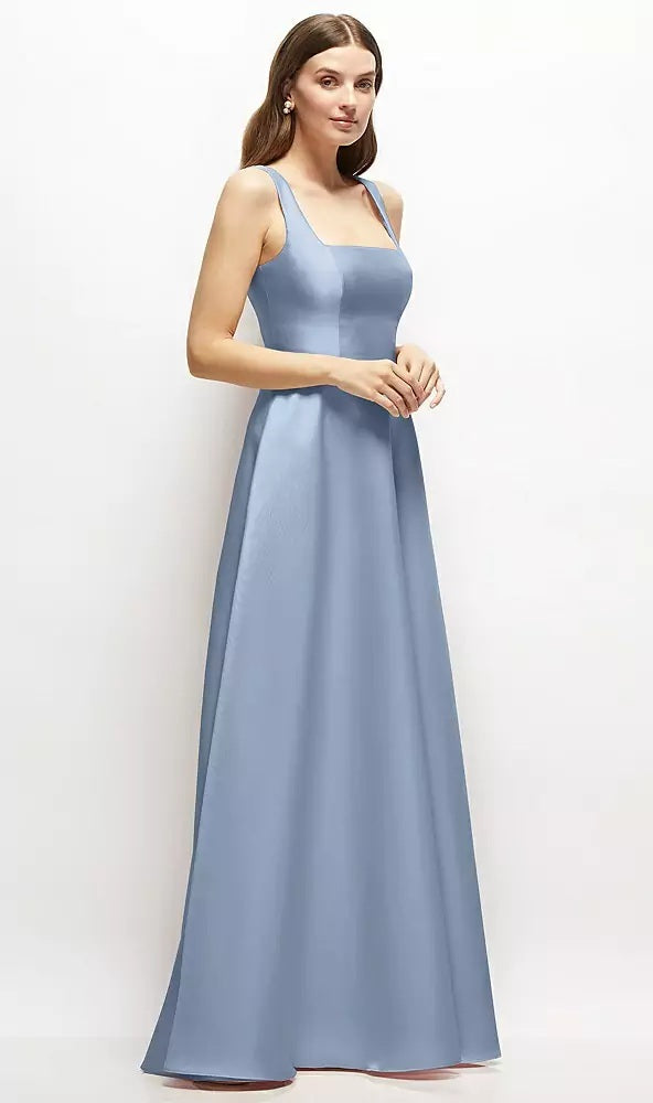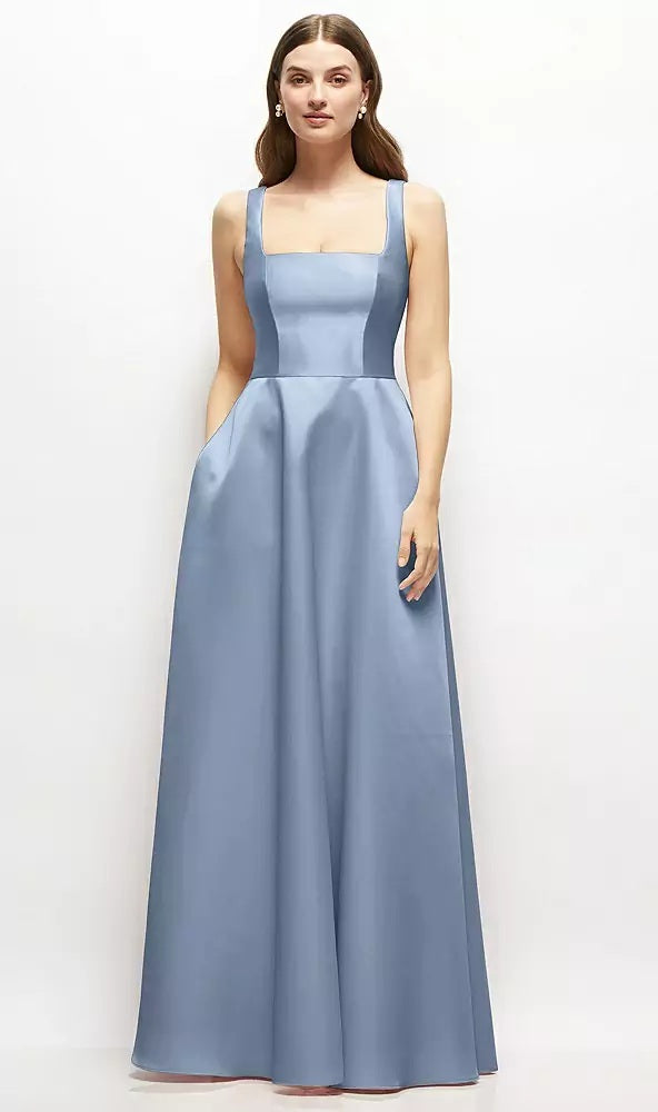 The Ace bridesmaid dress blends timeless romance with a chic, modern twist. Crafted in smooth satin twill, this elegant maxi dress features a sleek square neckline that flatters every frame and a swooshy full skirt that moves with effortless grace. Hidden pockets add a touch of function to the fashion-forward design, making it as practical as it is polished. Whether chosen in a soft floral print for whimsical romance or a rich solid hue for classic sophistication, Ace is a versatile choice for any bridal party or special occasion.