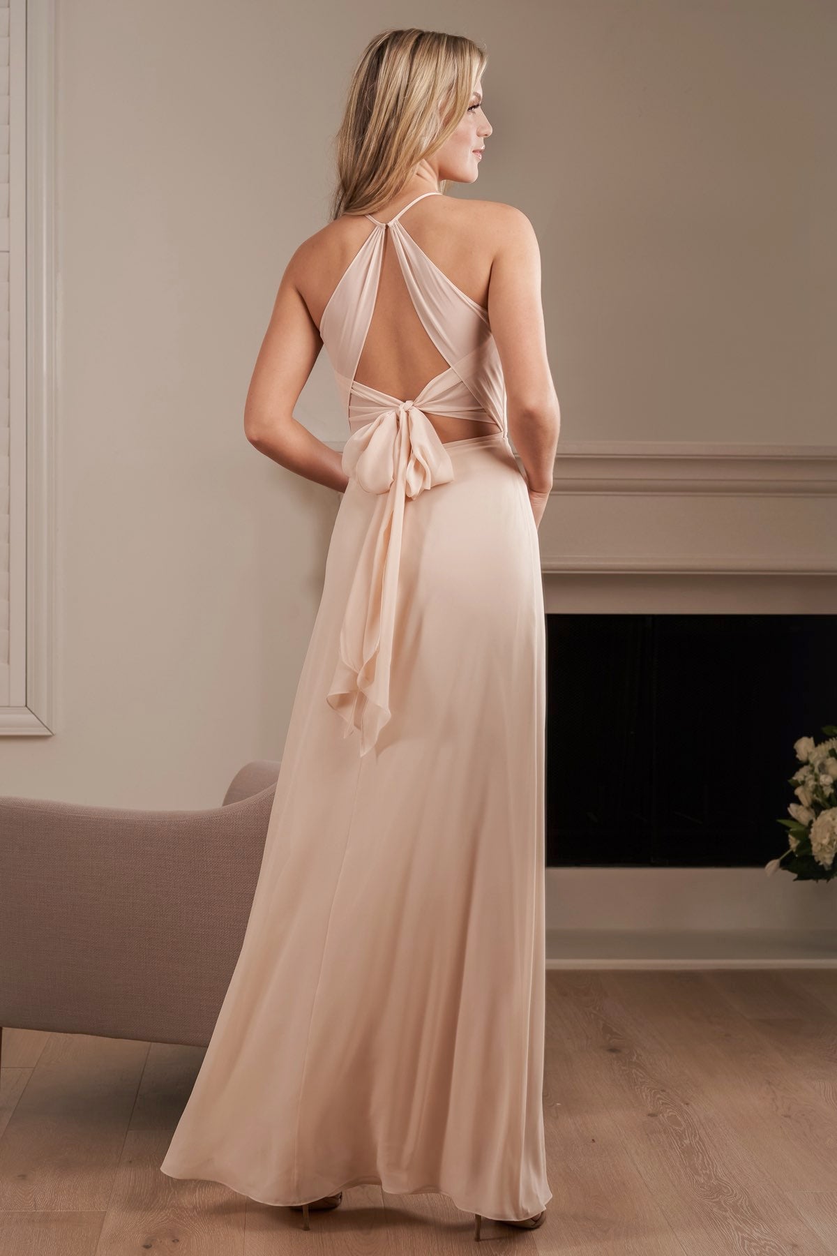 Chiffon Halter Neck Tie-Back Bridesmaid Dress