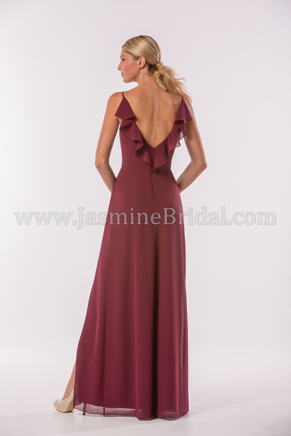 Light, romantic, and endlessly flattering, this Charlotte chiffon bridesmaid dress is all about the details. The bodice features a soft V-neckline with delicate spaghetti straps and flattering pleating across the front. A flowing A-line skirt with a side slit adds graceful movement, while the standout ruffled back detail creates a playful and elegant finish. A fresh take on timeless charm, perfect for modern bridal parties.