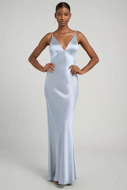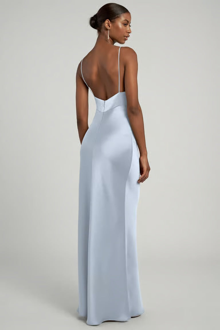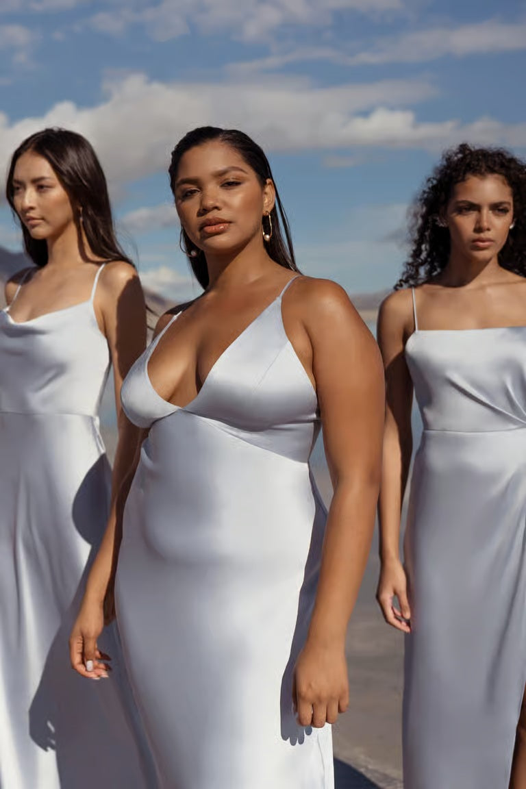 Minimalist and effortlessly chic, the Eloise bridesmaid dress is a refined take on the classic slip silhouette. Made from luxe satin, it features a tapered V-neckline and delicate spaghetti straps that highlight the shoulders and collarbone. The bias-cut skirt glides over curves for a smooth, flattering fit, while the low scoop back adds an alluring, barely-there finish.