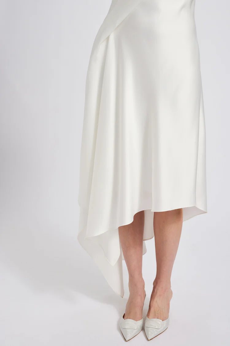 Fluid Satin Asymmetric Little White Dress