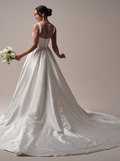 The Miko gown is timeless elegance in its purest form. Crafted from luxe Mikado, this ballgown features clean lines, a structured arched neckline, and a dramatic silhouette that stuns from every angle. Available with an arched or straight neckline.