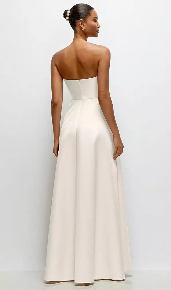 This strapless satin twill ballgown is pure magic in motion—blending timeless elegance with a modern edge. The structured cat-eye bodice features flattering draping that enhances your shape with bold, effortless style. A full circle skirt creates dreamy movement, perfect for sweeping entrances and twirls on the dance floor. Bonus: it has pockets, seamlessly hidden for ultimate convenience. Ideal for bridesmaids, formal events, or any occasion that calls for standout glamour with ease.